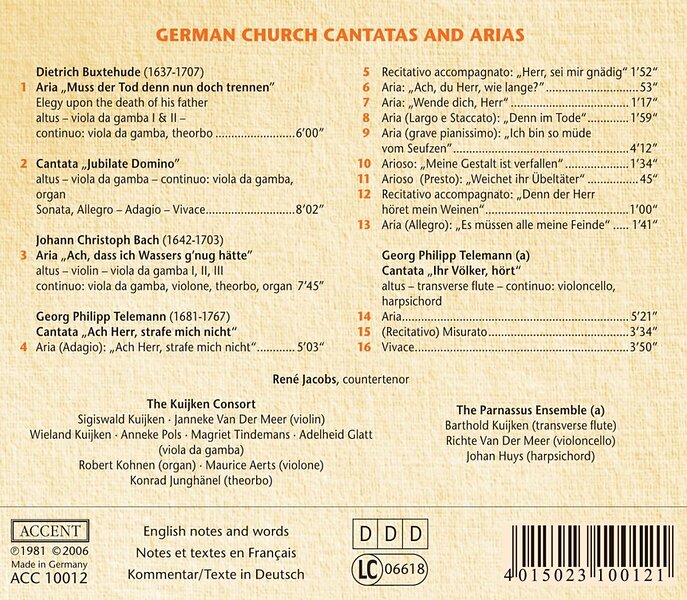 The best price for Ren Jacobs German Church Cantatas & Arias CD right now is £11.44. PriceSpy compares deals and offers from online and local shops.