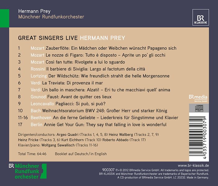 The best price for Hermann Prey, Wolfgang Sawallisch, Irving Berlin Great Singers Live CD right now is £14.57. PriceSpy compares deals and offers from online and local shops.