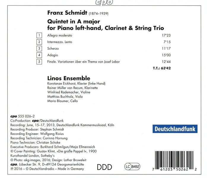 Schmidt, Konstanze Eickhorst, Rademacher Schmidt: Quintet In A Major For Piano Lefthand CD