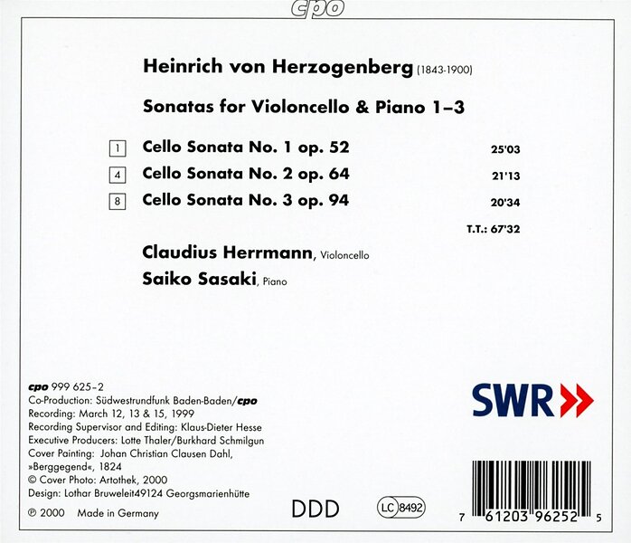 Claudius Herrmann, Saiko Sasaki Sonatas For Violincello & Piano CD