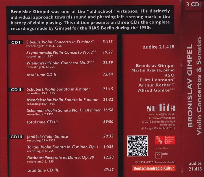 Bronislav Gimpel, Martin Krause Violin Concerto & Sonatas CD