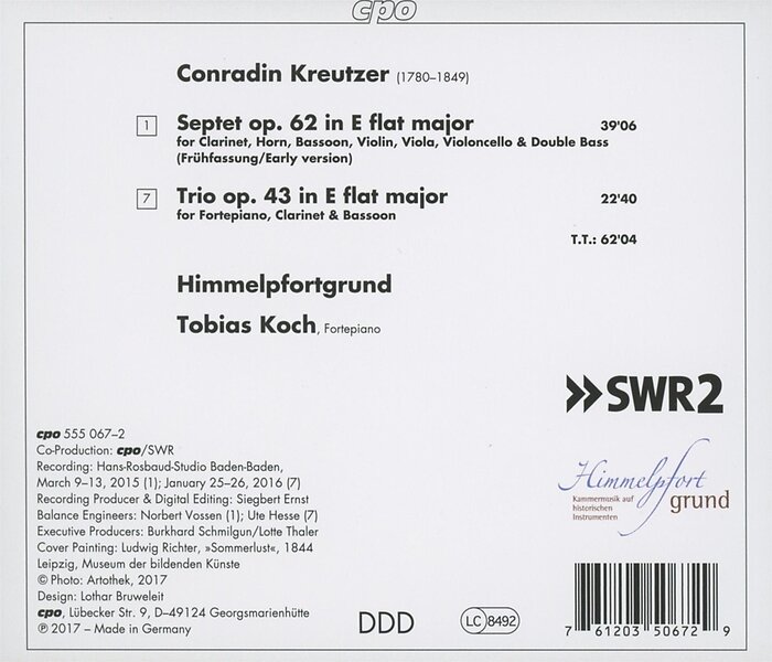 Kreutzer, Himmelpfortgrund, Koch Conradin Kreutzer: Septet, Op. 62 & Trio, Op. 43 CD