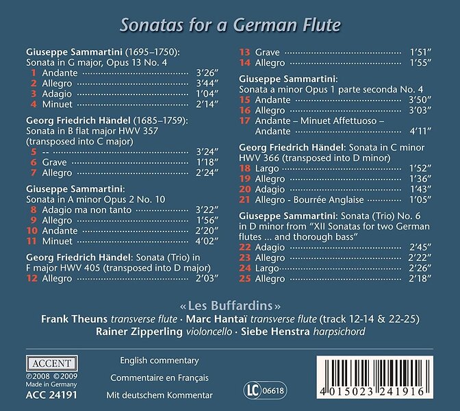 Les Buffardins, Rainer Zipperling, Siebe Henstra Sonatas For A German Flute CD