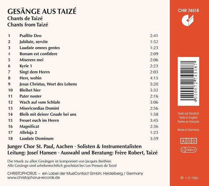Jacques Berthier Chants From Taize CD