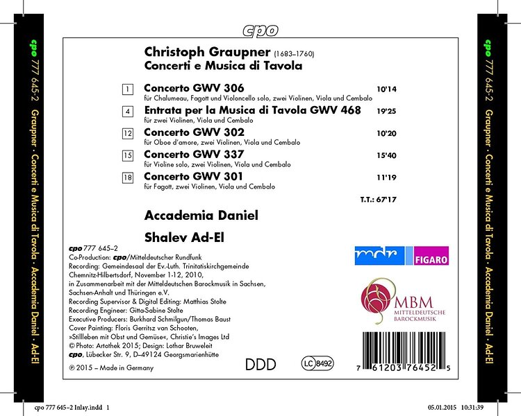 Graupner, Accademia Daniel, Adel Concerti E Musica Di Tavola CD