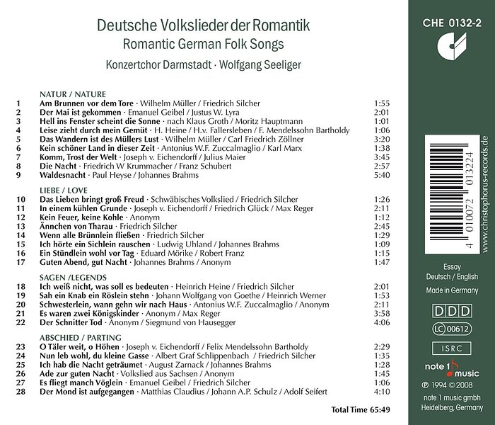Konzertchor Darmstadt Romantic German Folk Song CD