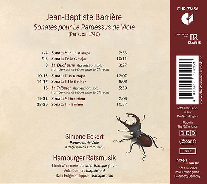 Eckert Hamburger Ratsmusik Sonates Pour Le Pardessus CD