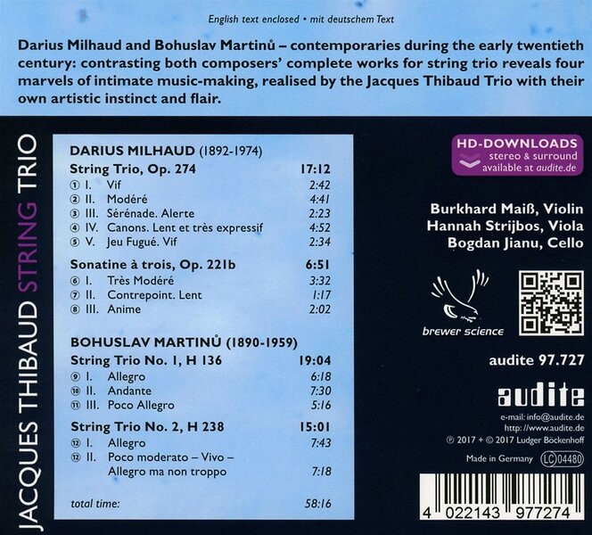 Jacques String Trio Thibaud Complete Works For String Trio CD