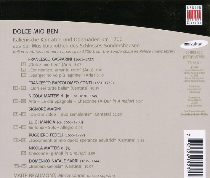 Maite Beaumont, Wolfgang Katschner, Italian Anonymous, Domenico Natale Sarro, Francesco Bartolomeo Conti Dolce Mio Ben CD