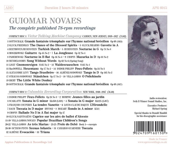 Guiomar Novaes Comp Published 78rpm Recordings CD