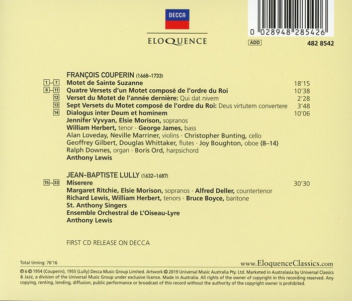 Couperin, Lully, Anthony Lewis Couperin: Sacred Music Lully: Miserere CD