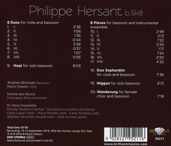 Hersant, Andrea Bressan, Ex Novo Ensemble Hersant: Music For Bassoon CD