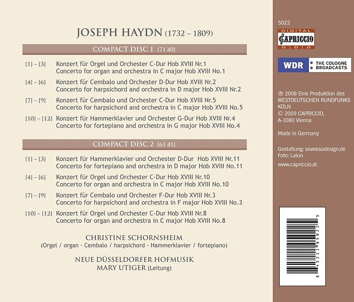 Invocation, Christine Schornsheim 8 Concerti For Harpsichord Piano & Organ CD