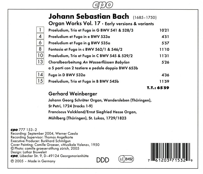 Gerhard Weinberger Organ Works 17 Early Versions & Variants CD