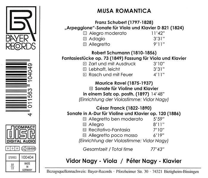 Péter Nagy, Vidor Nagy Muse Romantique CD