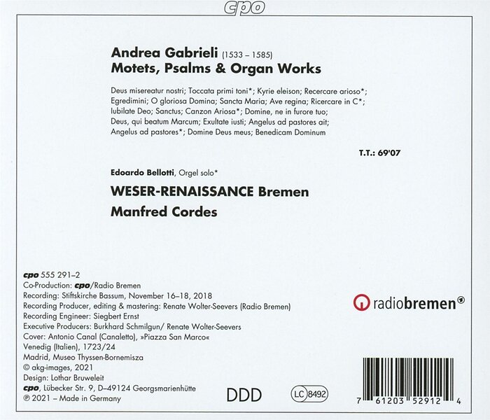 Weserrenaissance Bremen Cordes Motets Psalms & Organ Works CD