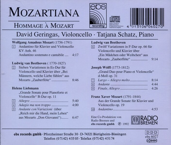 Geringas, Schatz Mozartianahommage An Mozart CD