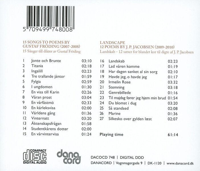 Diverse Artister 15 Songs To Poems By Gustaf Froding CD