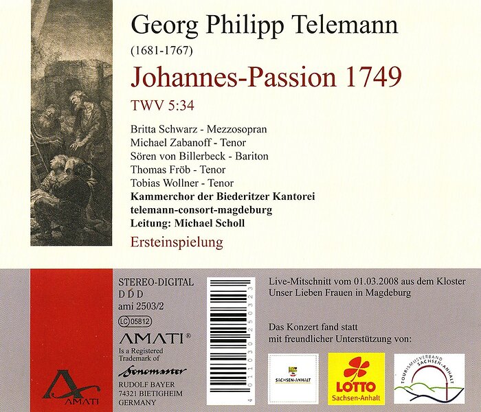 Scholl Johannespassion Twv 5:34 CD