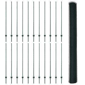 vidaXL Stängselstolpar 11 st U-kanal Grön 160 cm Stål, Sexkantigt stängsel Grön 1,6x50 m Stål