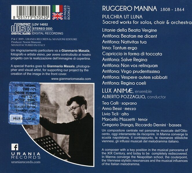 Manna, Lux Animae Ensemble, Pozzaglio Pulchra Ut Luna CD