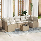 vidaXL Lounge Set 8 Pieces with Cushions Beige Poly Rattan