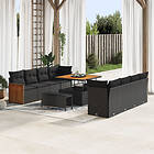 vidaXL 11 delar trädgårdsoffa set med kuddar svart poly rattan akacia