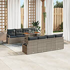 vidaXL 9-delars trädgårdsoffa set med kuddar grå polyrotting