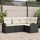 vidaXL 4-delad trädgårdsoff set med dynor i svart poly rattan