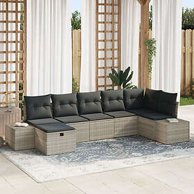 vidaXL 7-delars Trädgårdsoffa Set med Kuddar Ljusgrå Poly Rattan