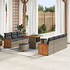 vidaXL Lounge Set 10 Pieces with Cushions Gray Poly-rattan Acacia
