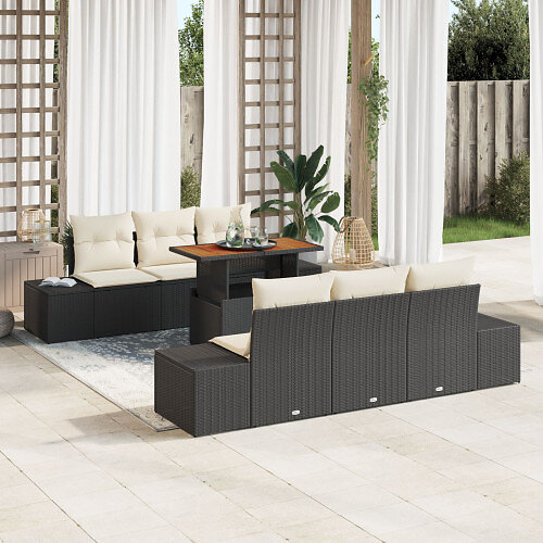 vidaXL 7-delars trädgårdsoffset med kuddar i svart polyrotting