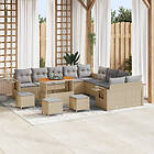 vidaXL Lounge Set 14 Pieces with Cushions Beige Poly Rattan Acacia