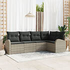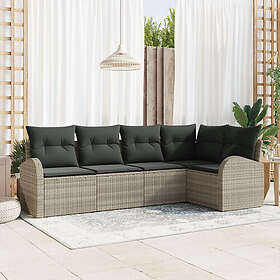 vidaXL 5-delad trädgårdsoffagrupp med kuddar Poly Ljusgrå Rattan