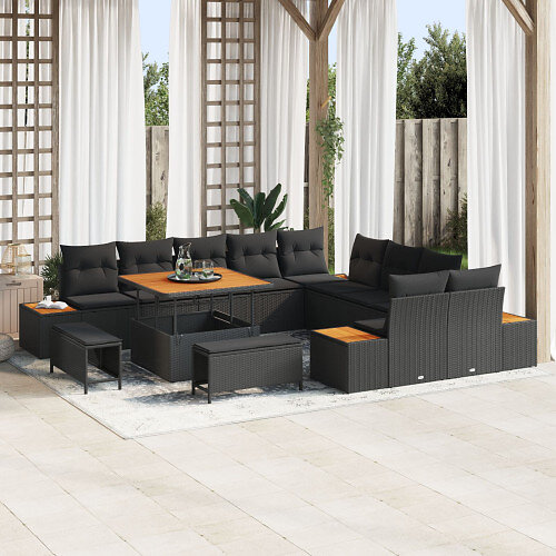 vidaXL 13-delars Trädgårdsoffasett med Kuddar Konstrotting Svart Akaciaträ