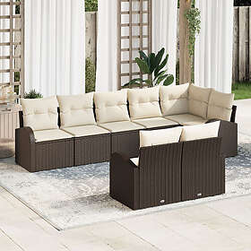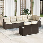 vidaXL 8-delad trädgårdsoffaset med kuddar Brun poly-rattan