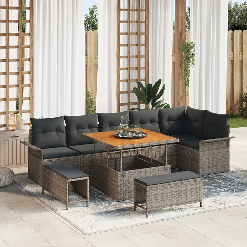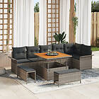 vidaXL Lounge Set 9 Pieces with Cushions Poly Gray Rattan Acacia
