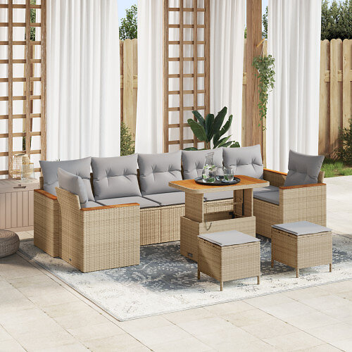 vidaXL Lounge Set 10 Pieces with Cushions Poly Beige Rattan Acacia
