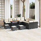 vidaXL 14-delars trädgårdsoff-set med kuddar poly svart rattan akacia