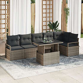 vidaXL 7-delat trädgårdsoffaset med kuddar poly grå konstrotting