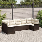 vidaXL 7-delad trädgårdssoffgrupp med kuddar Brun Polyrotting