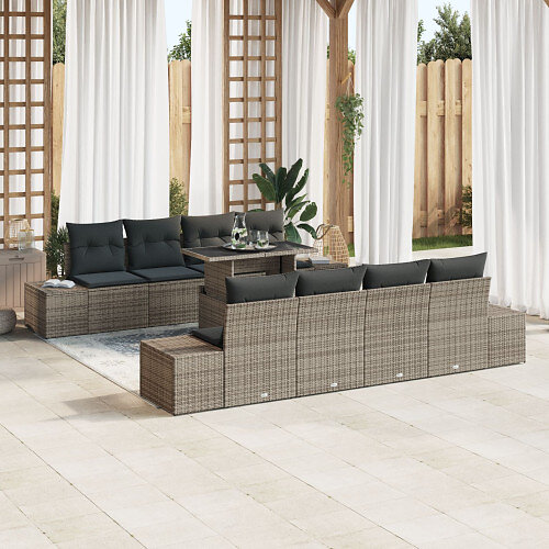 vidaXL 9-delat trädgårdsofa set med kuddar grå poly rotting