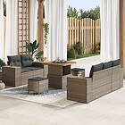 vidaXL 8-delad Trädgårdsoffaset med kuddar Grå Poly Rattan Akacia