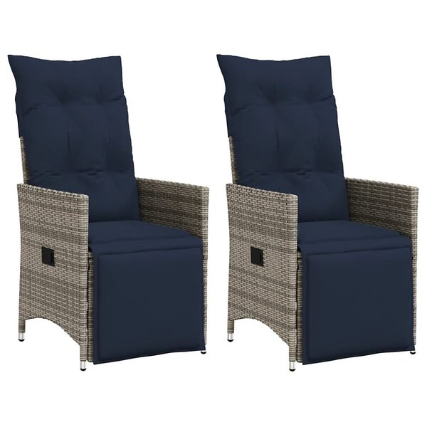vidaXL Trädgårdsstolar 2 st med dynor grå konstrotting