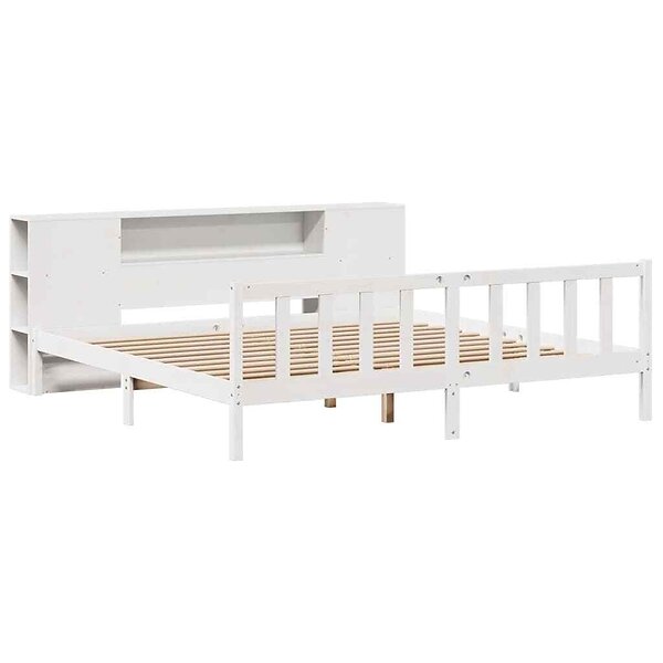 vidaXL Bookcase Bed without Mattress White 180x200 cm Super King Solid Wood Pine