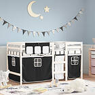 vidaXL Loft Bed with curtains white and black 80x200 cm solid pine