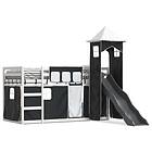 vidaXL Bunk Bed with Slide and Curtains white and black 90x190 cm