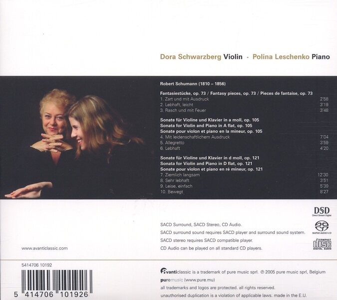 Dora Schwarzberg, Polina Leschenko Music For Violin & Piano CD
