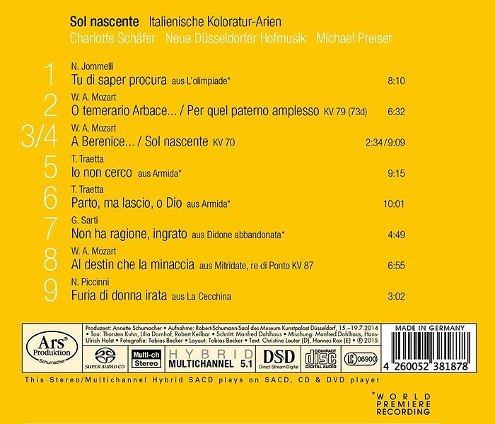 Jommelli, Schafer, Neue Dusseldorfer Hofmusik Sol Nascente Italian Coloratura Arias CD