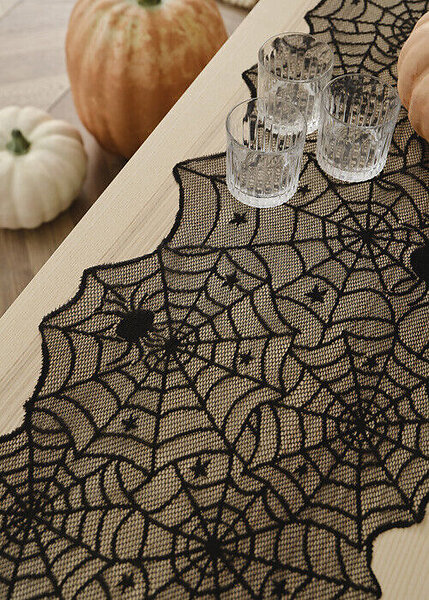 Ginger Ray HAR-112 Halloween Black Spider Web Table Runner